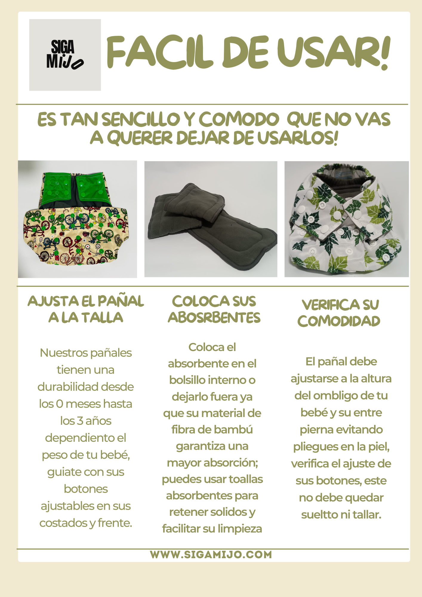 Contribuye con el medio ambiente, en comparación con los pañales desechables estos generan menos residuos.